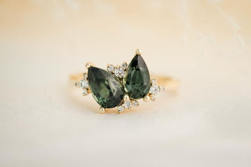 2.6CT Green Pear Cut Two Stone Ring | Anniversary Gift Ring | Gift For Women | Elegant Ring