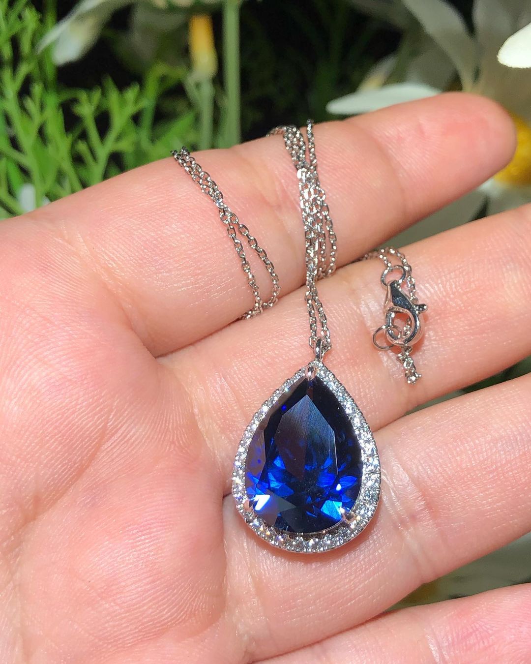 3.20Ct Blue Pear Cut Halo Pendant | Special Occasion Pendant | Fashion Jewelry | Stunning Pendant For Women