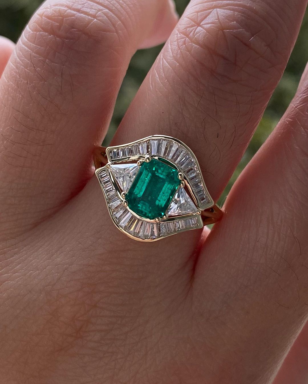 Elevate your party look with our 2.70Ct Green Emerald Cut Solitaire Ring, perfect for women who love to shine. This stunning ice crushed ring features a vibrant green emerald cut cubic zirconia as the main stone, complemented by sparkling secondary cubic zirconia stones.