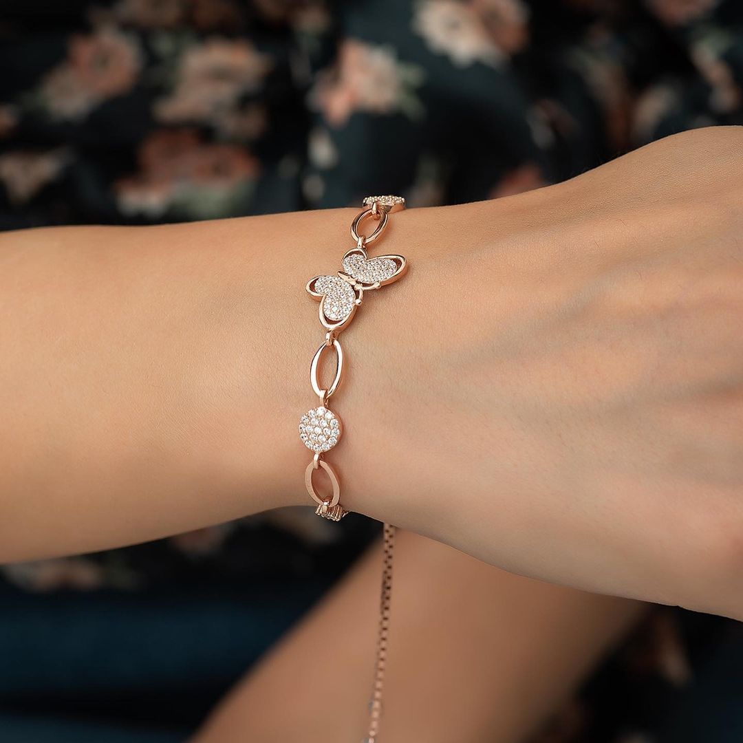Butterfly Shape White Round Brilliant Cut Signity Diamond Cluster Bracelet | Adjustable Bracelet For Girl | Baby Shower Gift