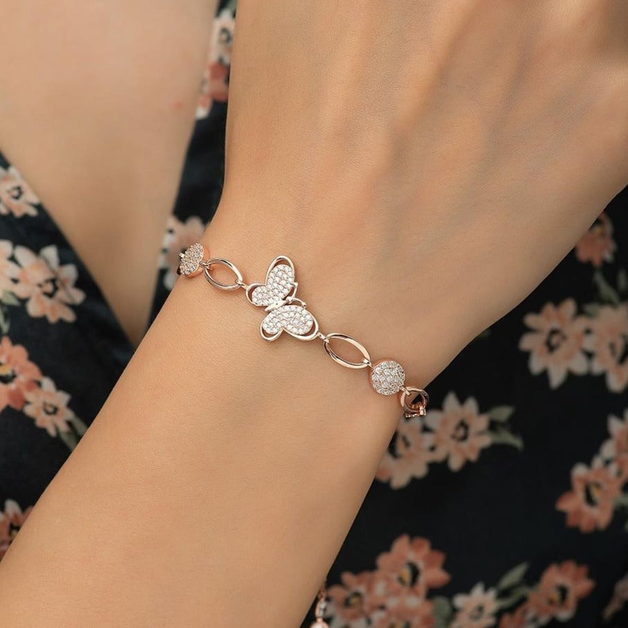Celebrate a special occasion with our Butterfly Shape White Round Brilliant Cut Signity Diamond Cluster Bracelet. Featuring sparkling Cubic Zirconia stones, this adjustable bracelet is perfect for a girl.