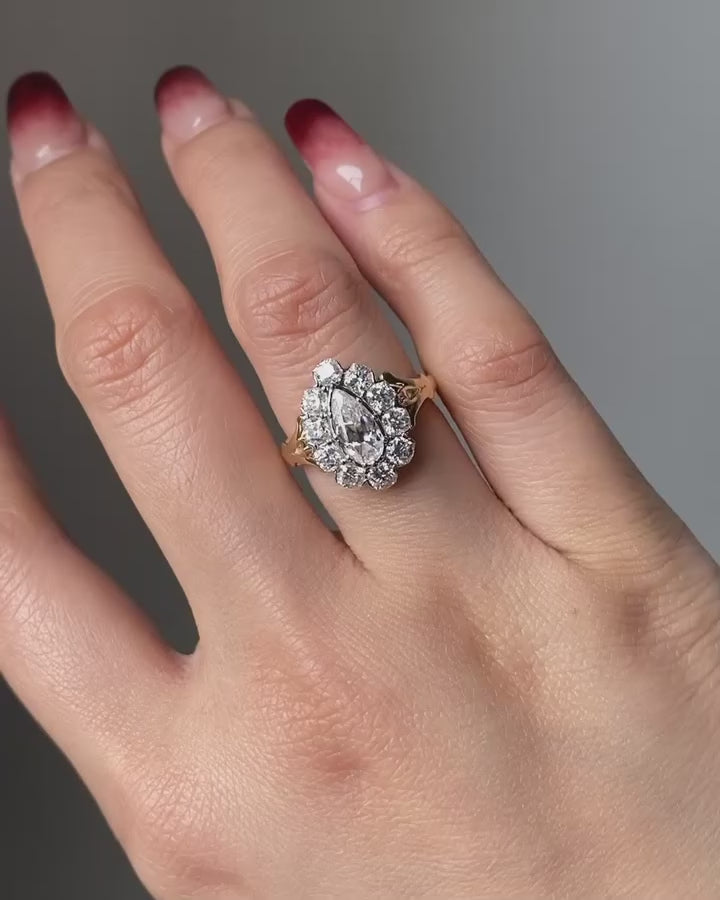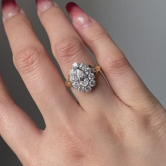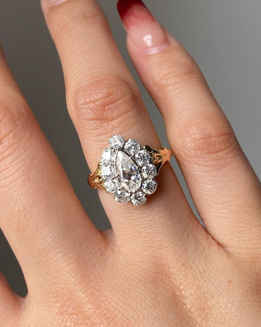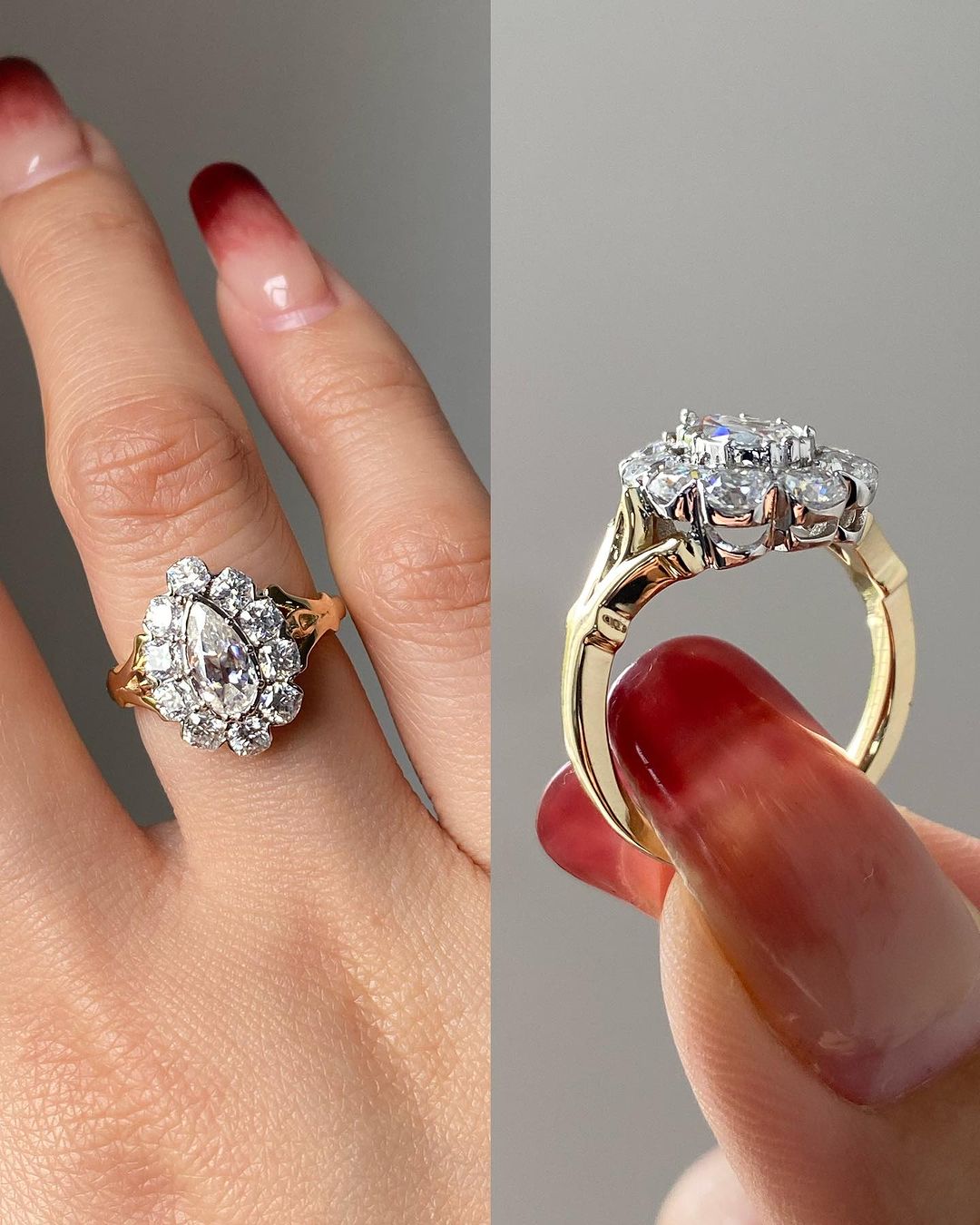 2.1Ct White Pear Cut Halo Ring | Wedding Ring For Bridal | Promise Ring | Modernist Ring