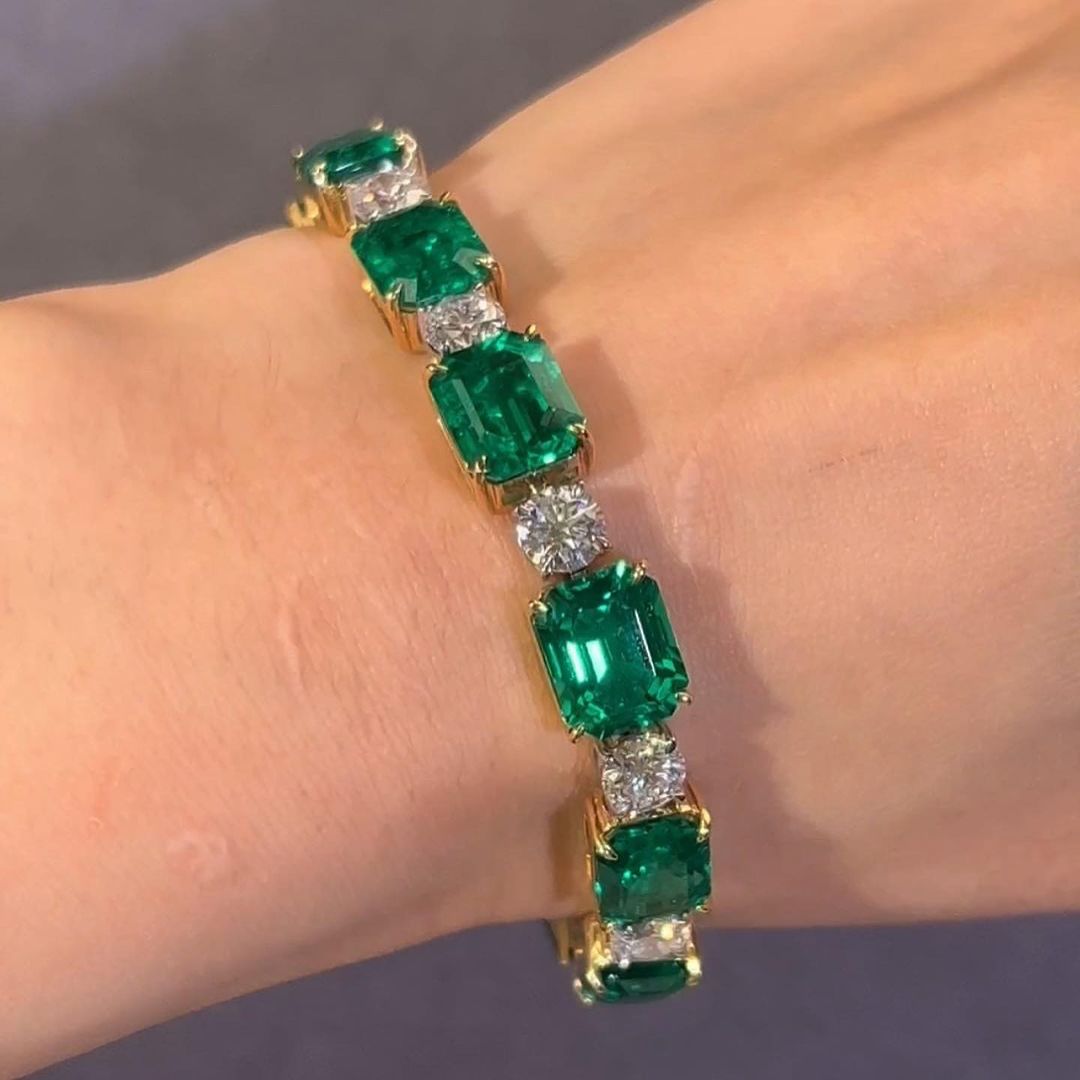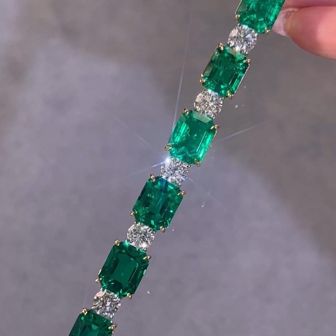 Green Emerald And White Round Brilliant Cut Signity Diamond Prong Set Tennis Bracelet For Her | Baby Shower Gift Tennis Bracelet | Fashion Jewelry