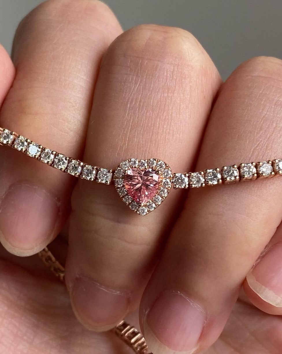 Pink Heart Brilliant Cut Moissanite Diamond Tennis Bracelet For Women | Halo Tennis Bracelet | Engagement Promise Gift Bracelet
