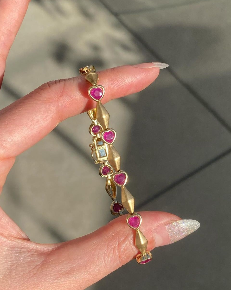 Pink Heart Brilliant Cut Signity Diamond Bezel Set Bracelet | Stylish Bracelet For Women | Birthday Gift Jewelry For Her