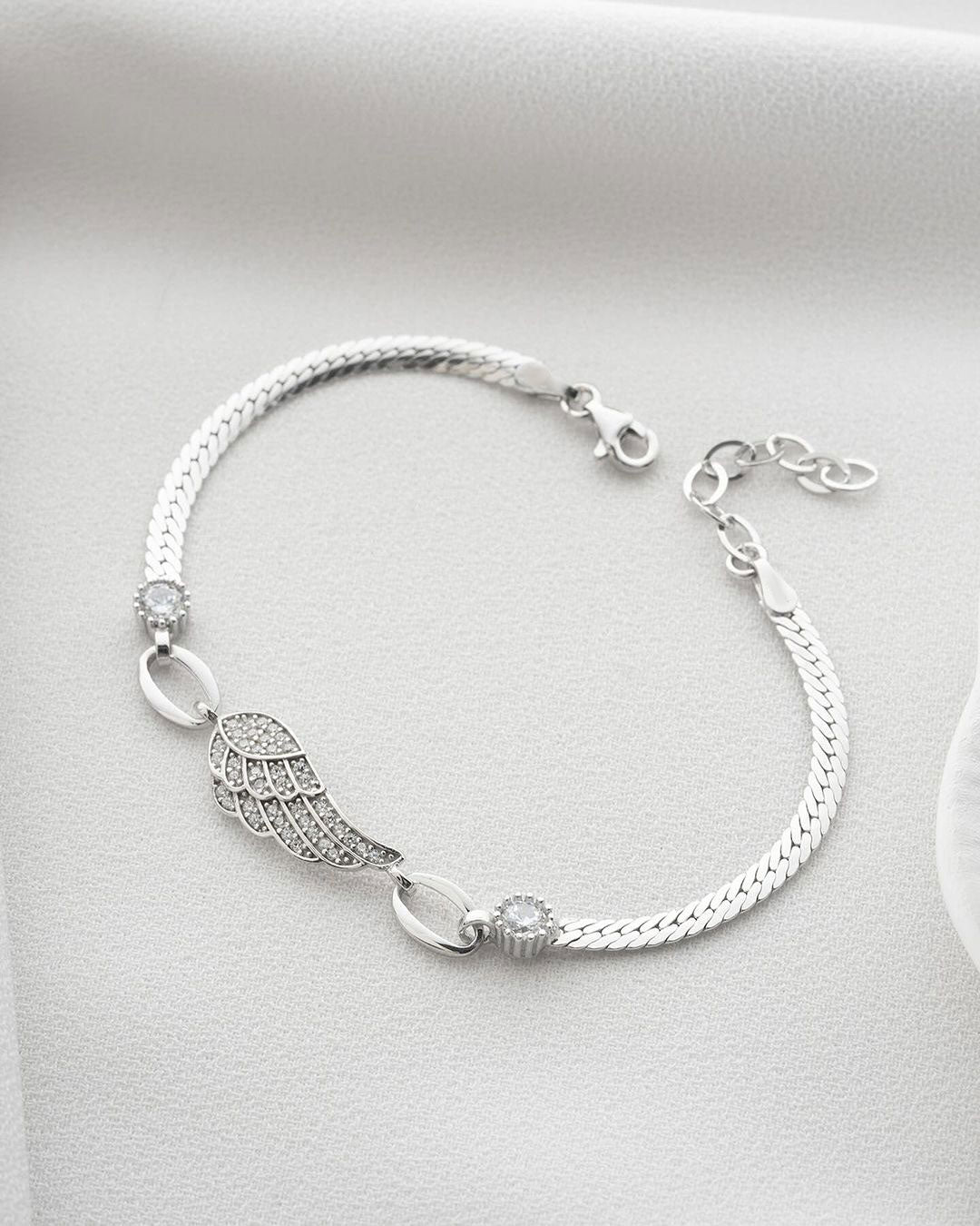 The angel wings design adds a touch of charm and symbolism, making it a perfect choice for women who appreciate timeless elegance. Whether worn alone or paired with other jewelry, this bracelet enhances any outfit with its subtle yet captivating beauty.